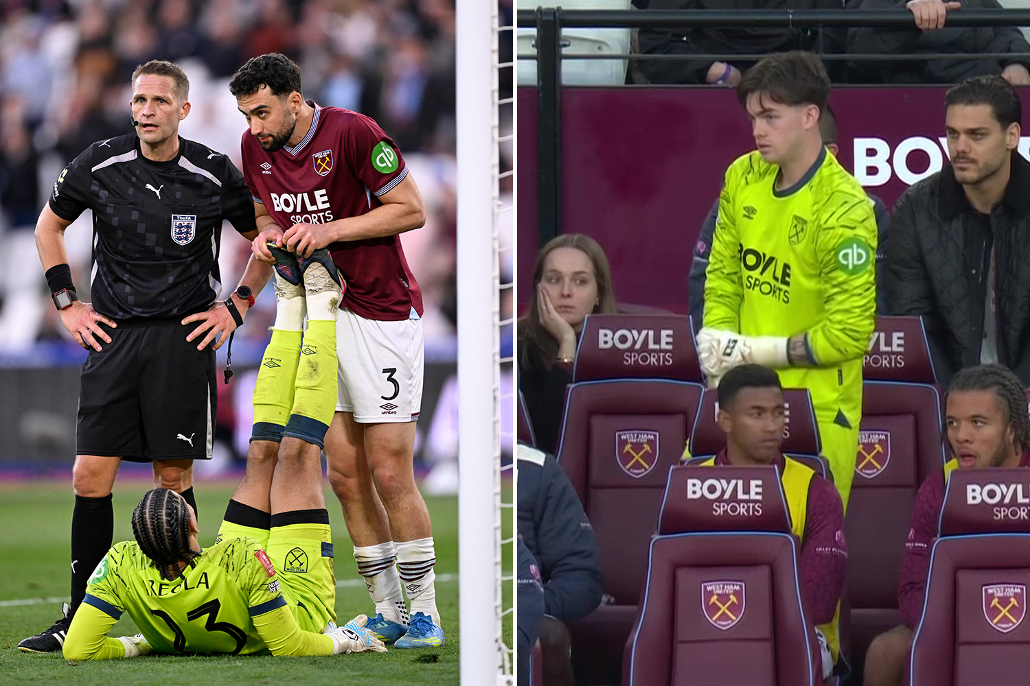 WEST HAM were forced to make a goalkeeper change just five minutes before heading to penalties against Leeds in the FA Cup.