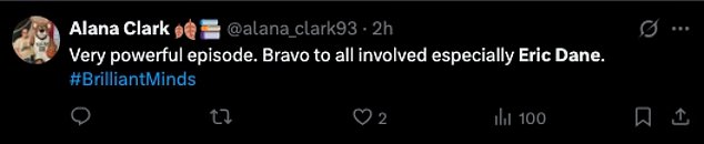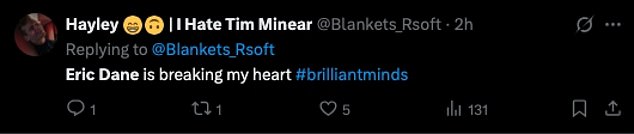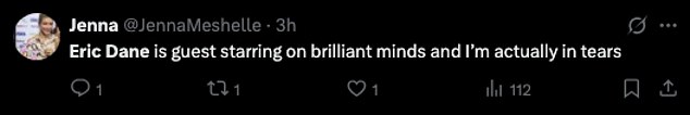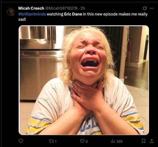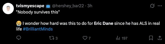 After the episode many fans took to social media, with one writing, 'Eric Dane is breaking my heart'