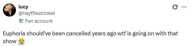 But despite boasting a star-studded cast including Zendaya, Sydney Sweeney and Jacob Elordi, fans have called for the show to be cancelled.