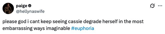 ‘Please god i cant keep seeing cassie degrade herself in the most embarrassing ways imaginable,’ someone else added.