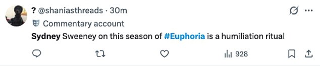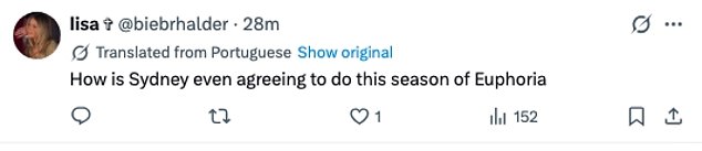‘How is Sydney even agreeing to do this season of Euphoria?’ someone else questioned.