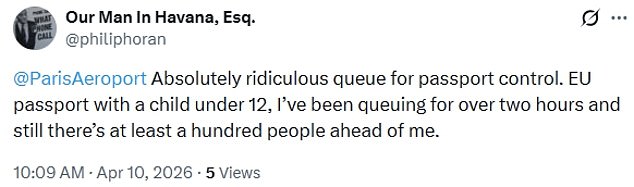 Over in Paris, a parent travelling with a child, believed to be at Charles de Gaulle airport wrote: ‘Absolutely ridiculous queue for passport control. EU passport with a child under 12, I’ve been queuing for over two hours and still there’s at least a hundred people ahead of me.’