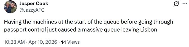 Another traveller said he’d experienced a similar scenario, writing: ‘Having the machines at the start of the queue before going through passport control just caused a massive queue leaving Lisbon.’