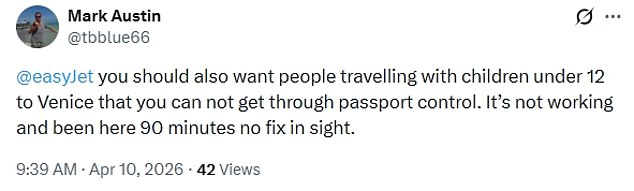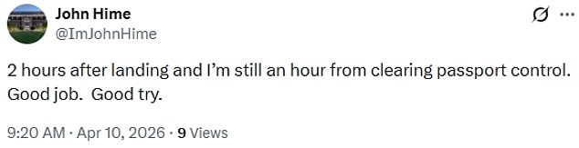 At Milan’s Malpensa Airport, it was a similar scenario. ‘Two hours after landing and I’m still an hour from clearing passport control. Good job. Good try,’ another delayed passenger fumed.
