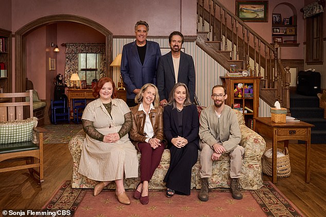 The cast are pictured with series creator Phil Rosenthal on the set of the reunion special