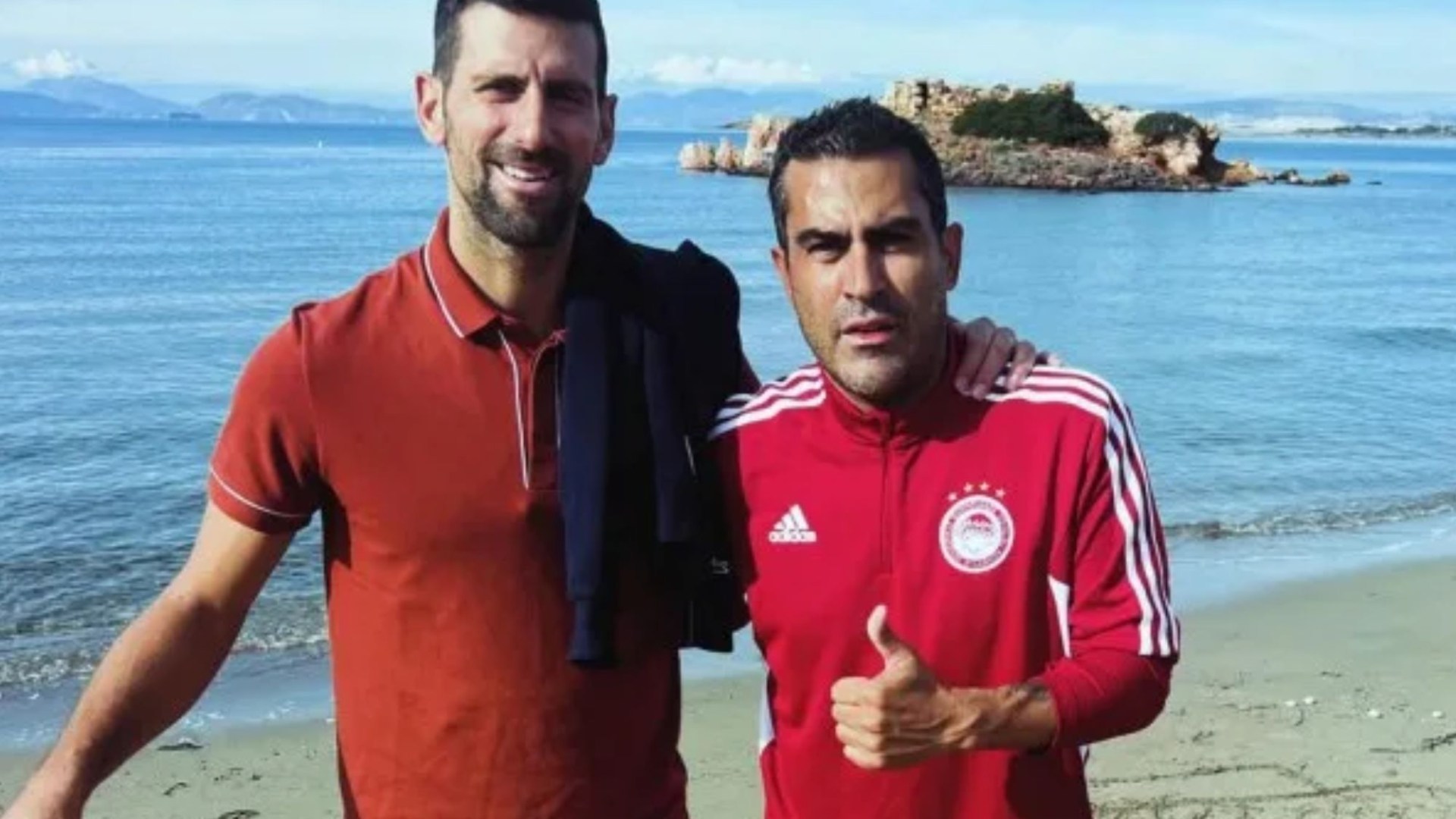 The 40-year-old Mexican, who began his European career as a fan favourite at Olympiacos, winning three league titles, posted the photo on his Instagram, showing the pair grinning on the sand.