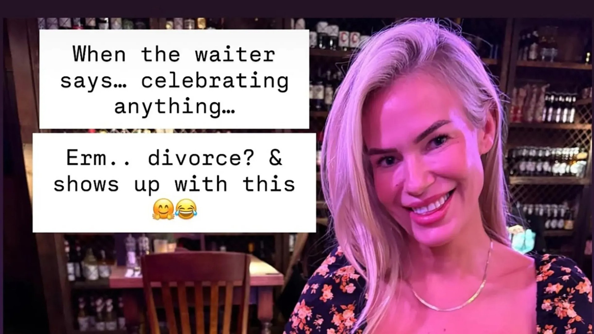 The mum of two wrote: “When the waiter says ‘celebrating anything’ . . . erm, divorce? and shows up with this.”