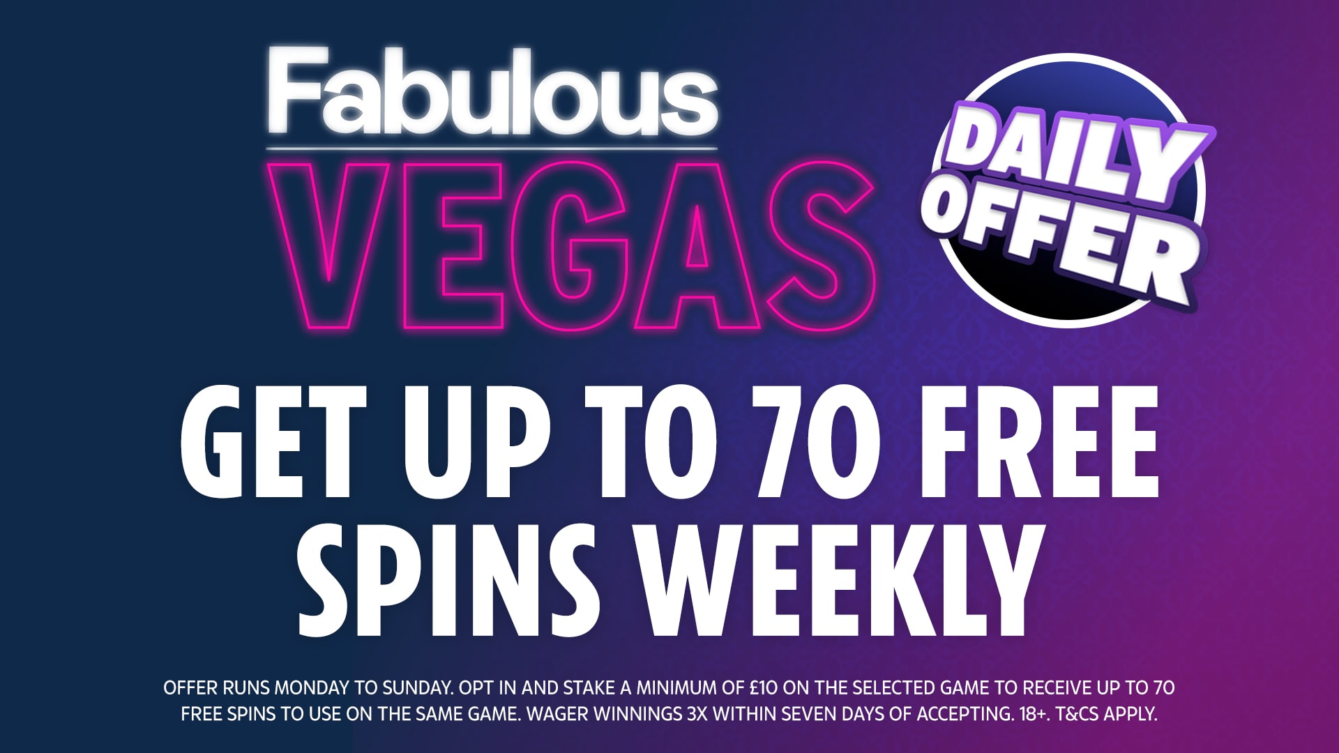 FABULOUS VEGAS has a daily offer that allows players to win up to 70 free spins every week.