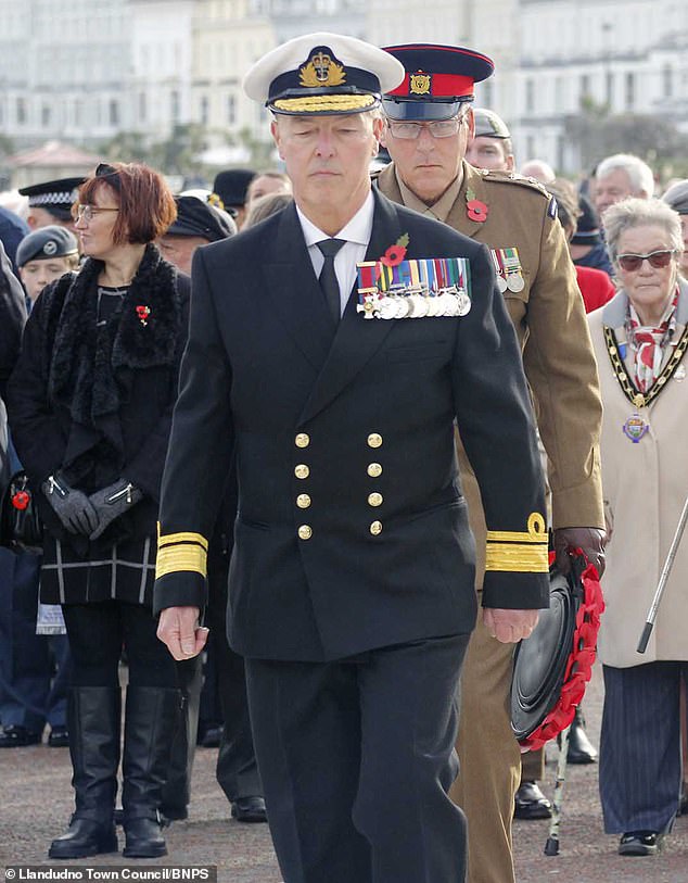 The Daily Mail previously revealed that Carley has donned the same fake admiral costume in two other Remembrance Sunday services in Caernarfon – once in 2018 and again in 2019.