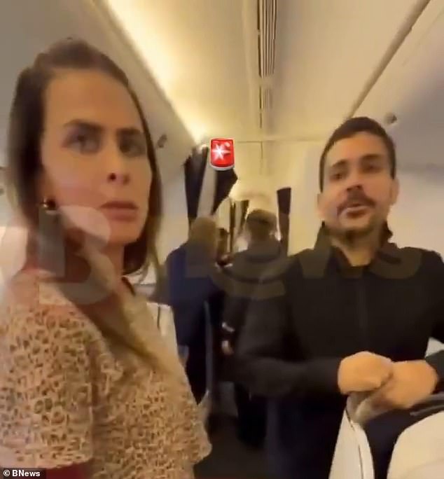 ‘You don’t film,’ she added. ‘You’re not allowed to film,’ as she appeared to walk off the plane with their boarding passes.