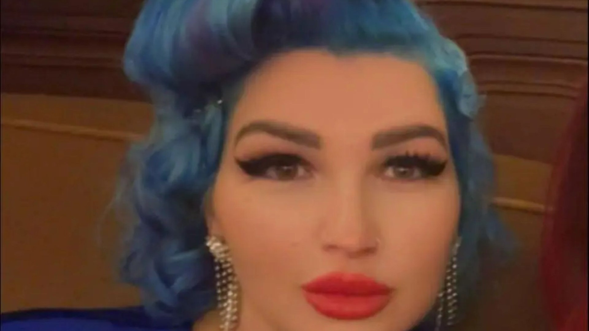 An image collage containing 1 images, Image 1 shows Tania Williams, a woman in her 40s, with vibrant blue hair, a blue top, and red lipstick