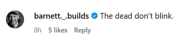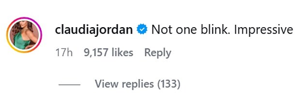 ‘Not one blink. Impressive,’ wrote former The Real Housewives of Atlanta star Claudia Jordan, as another fan quipped: ‘The dead don’t blink.’