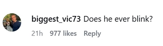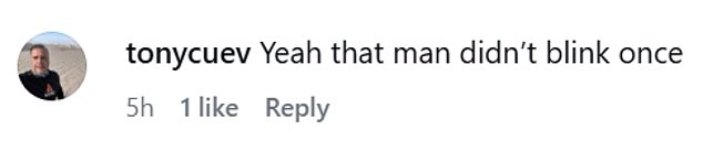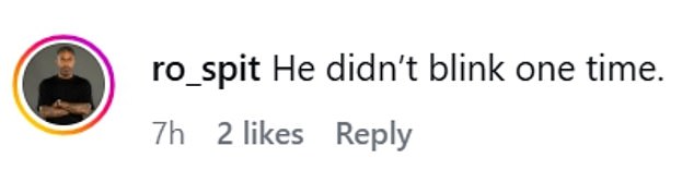 Others also registered their disbelief, marveling: ‘Not one single blink,’ ‘Yeah that man didn’t blink once,’ ‘Does he ever blink?’ and: ‘He didn’t blink one time.’