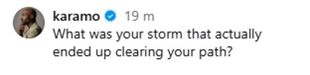 In a recent post on Thursday he asked his followers: ‘What was your storm that actually ended up clearing your path?’ before sharing inspiration messages.