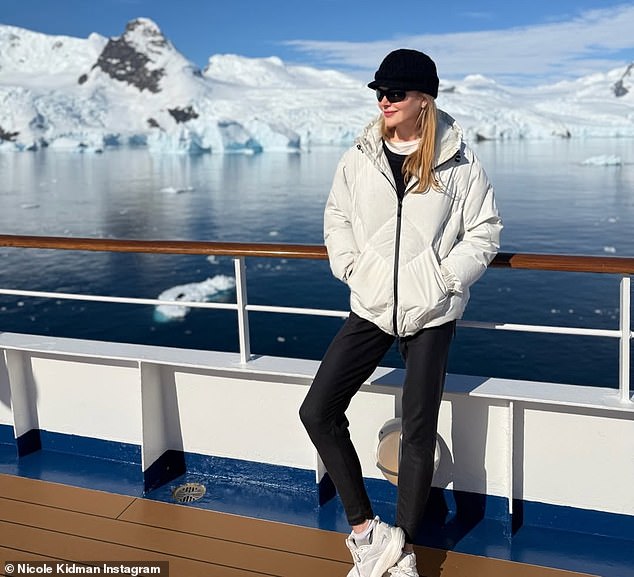 Ms Kidman captioned her post: ‘Thank you for taking me to my seventh continent! Once in a lifetime adventure with family and friends.’