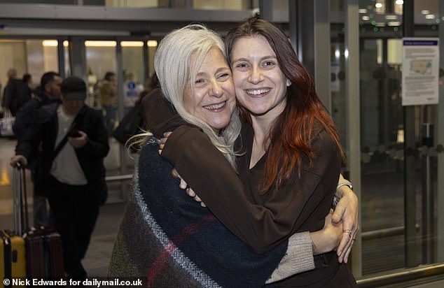 Isabel Robertson, 29, of Windsor, was greeted with a hug from mother Alba as she landed on Monday.