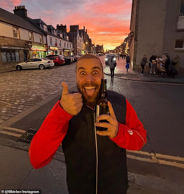 Justin Bieber gave the thumbs up while holding a bottle of Innis and Gunn as he stood near to the award-winning Cromars fish and chip shop in St Andrews