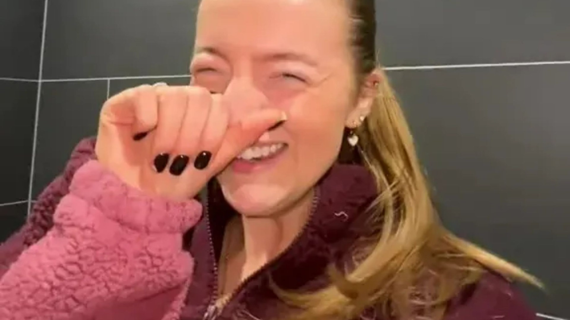 So, she popped into the loo and looked in the mirror – at which point she realised her mistake.