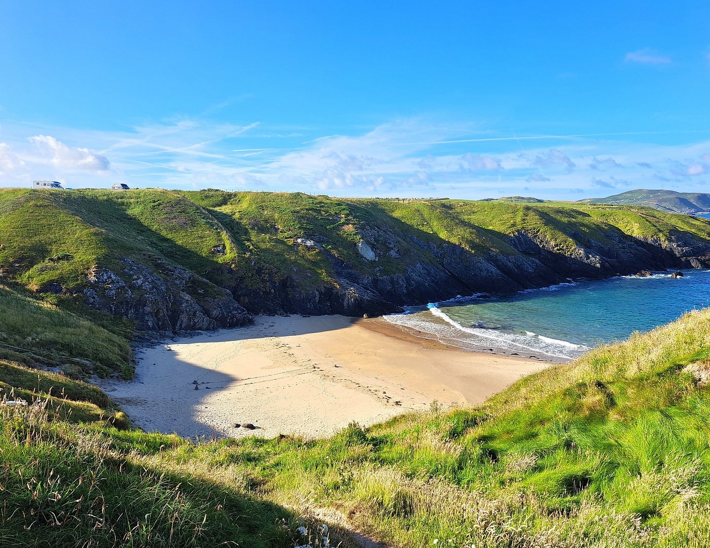 The site overlooks Port Iago’s white sand beach and blue seas, which sits on the Llŷn Peninsula.