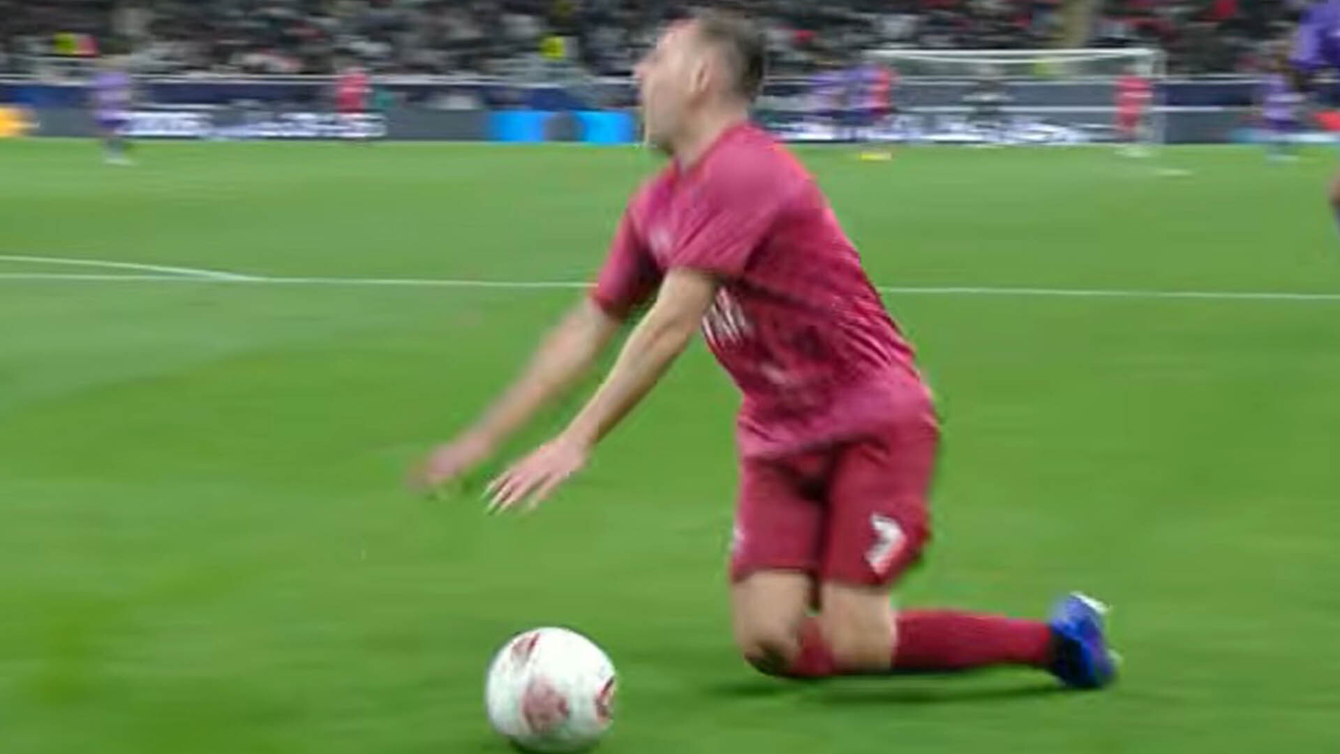 The 42-year-old picked up the ball on the left wing and dribbled into the penalty area.
