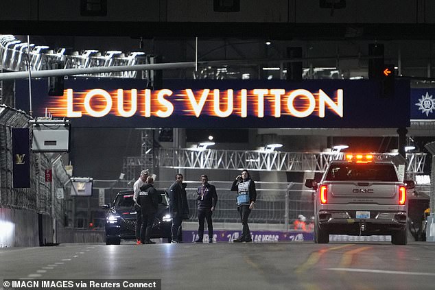 The FIA, who govern F1 proceedings, offered live updates, saying: ‘Following a marshal report of a possible loose manhole cover before Turn 17, Race Control were unable to confirm this information from the CCTV available. The session has been red-flagged as a precautionary measure and Race Control personnel are currently on site assessing the situation.
