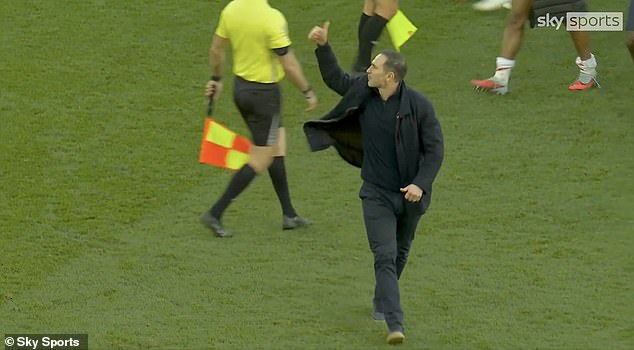 Asked about the ordeal by Sky Sports post-match, the former Chelsea and Everton boss explained: ‘I’ve got no problem with… it’s fine. I understand when a player, in front of their own fans, defends the situation.