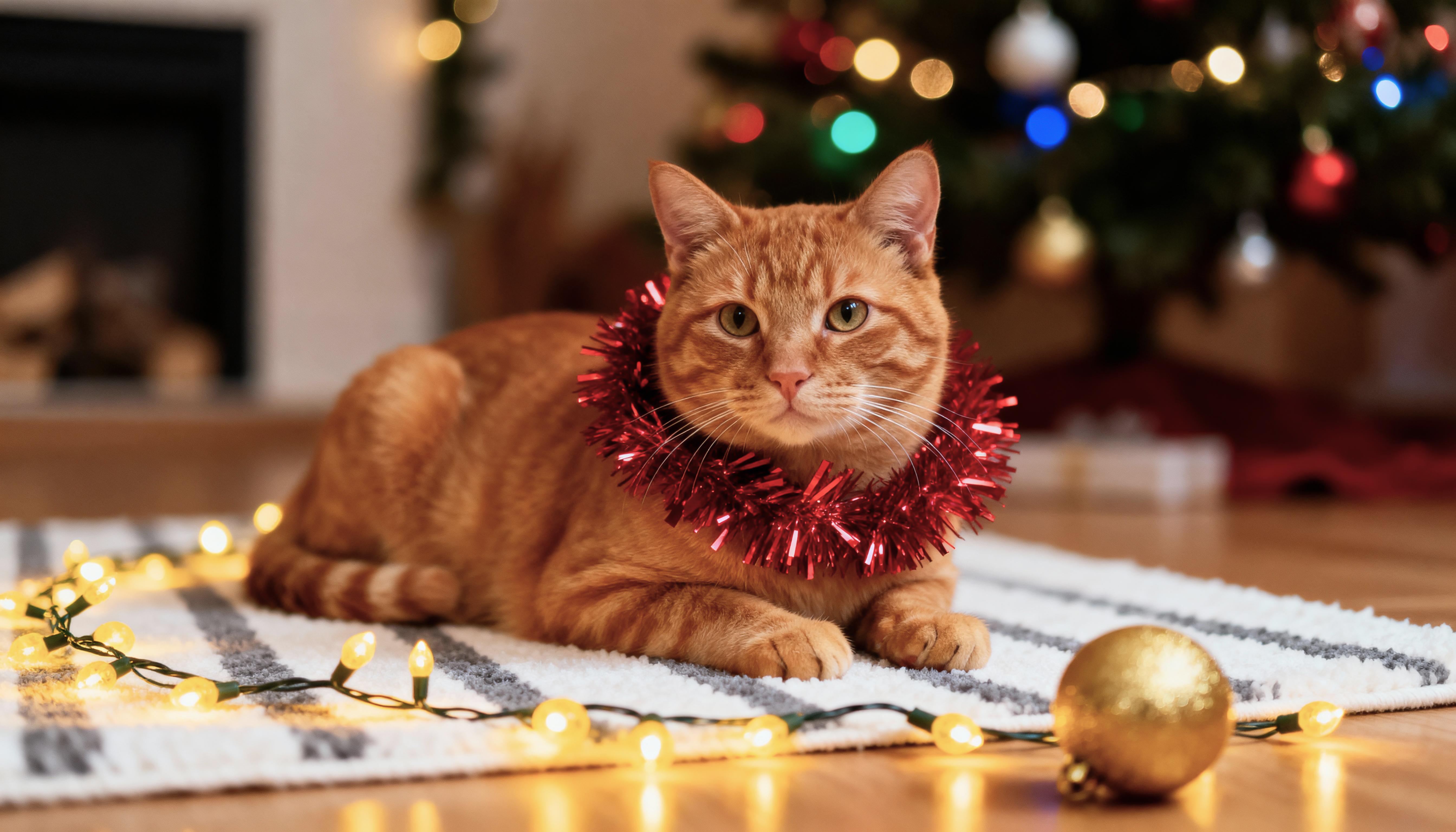 Avoid tinsel, ribbons or any string-like decorations as these are irresistible to cats and if ingested, can lead to dangerous “linear foreign bodies” requiring surgical removal.