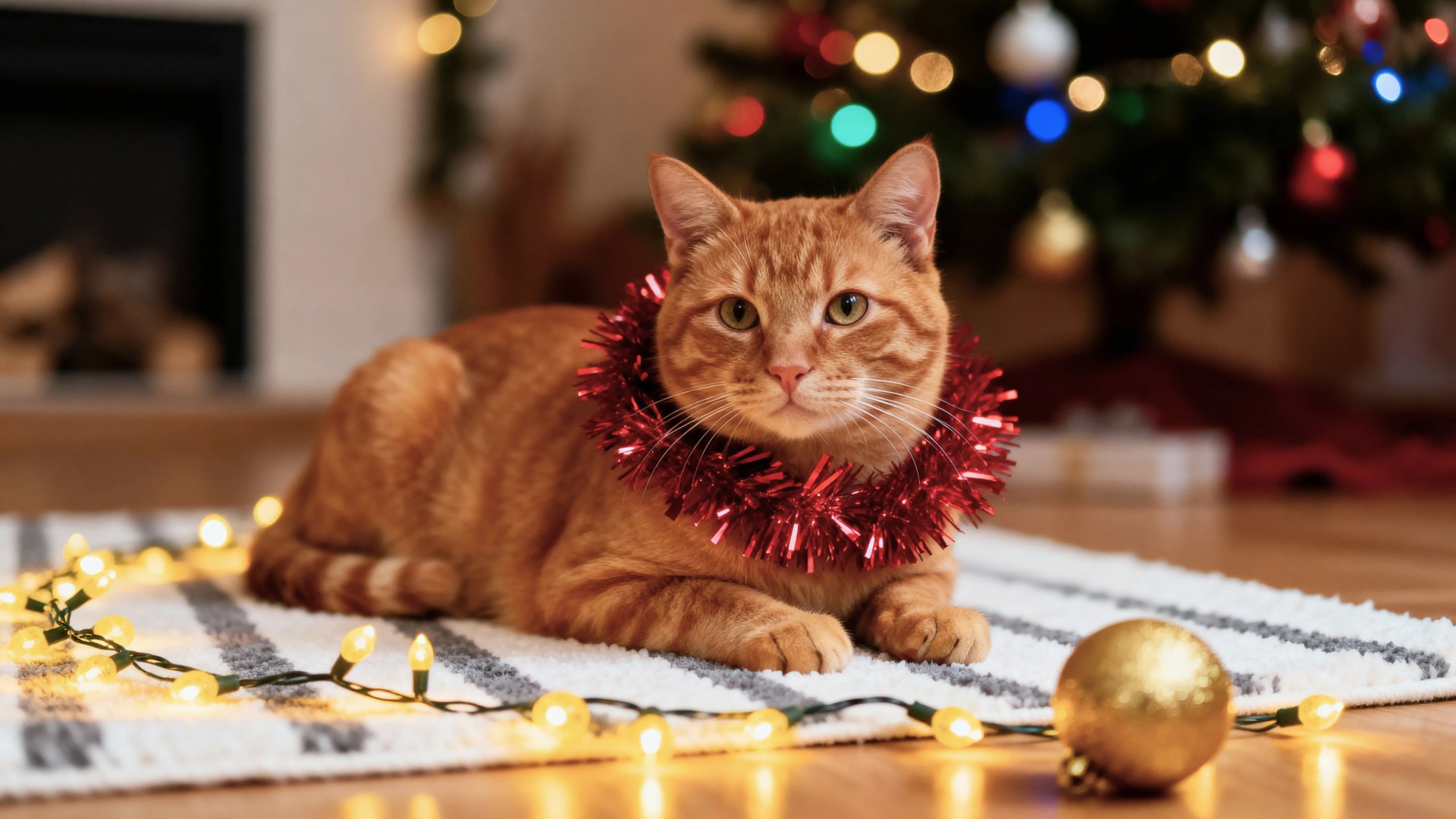Avoid tinsel, ribbons or any string-like decorations as these are irresistible to cats and if ingested, can lead to dangerous “linear foreign bodies” requiring surgical removal.