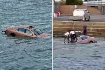 Moment OAP plucked from sunroof after £50k Bentley plunges into sea