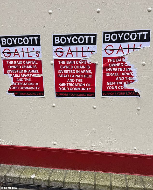 The newly opened Gail’s bakery in Archway, north London, has been targeted by pro-Palestinian campaigners – putting up posters calling for the chain to be boycotted