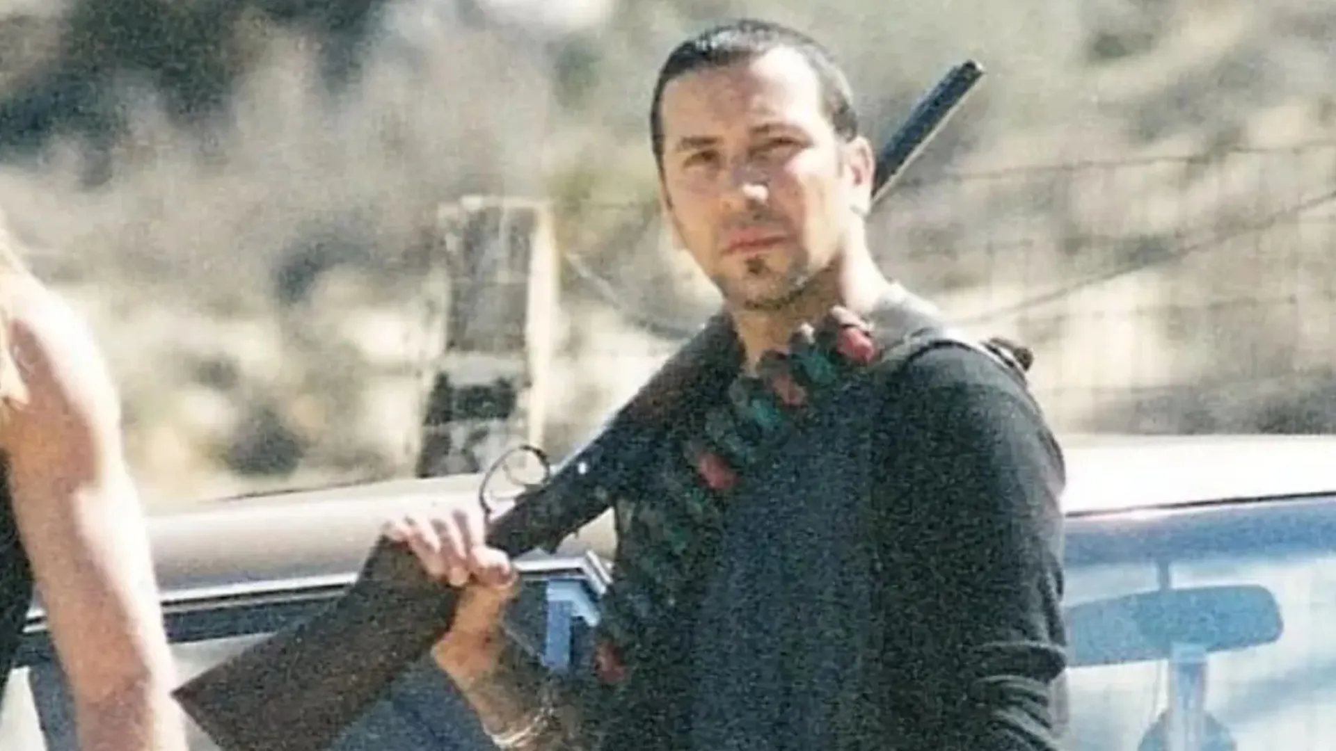 Former gun dealer Storenzo Dominic (R) pictured on the set of 62 Pick Up in California, 2002Credit: Supplied