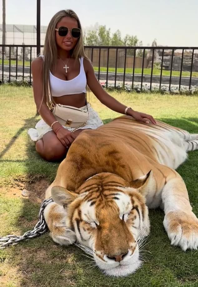 The good times for Walker included a trip to Dubai where she was pictured stroking a chained big cat