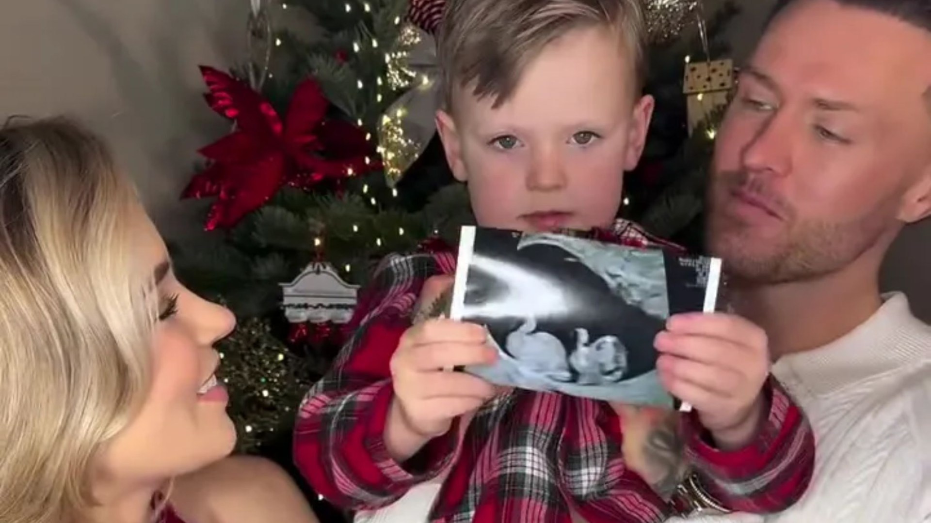 Their son Crew, four, decorated an ornament to hang on the Christmas tree, which read: “Baby Christie coming 2026.”