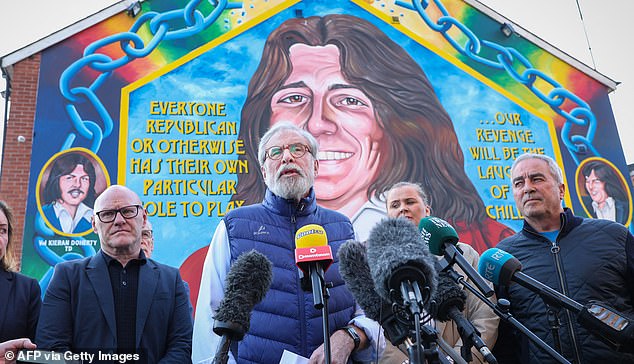 At his press conference Adams, 77, brazenly declared a case that had ‘verged on a show trial’ had come to a rightful end, proving ‘I was never a member of the IRA… and have never been a senior, let alone most senior, figure in the IRA’.