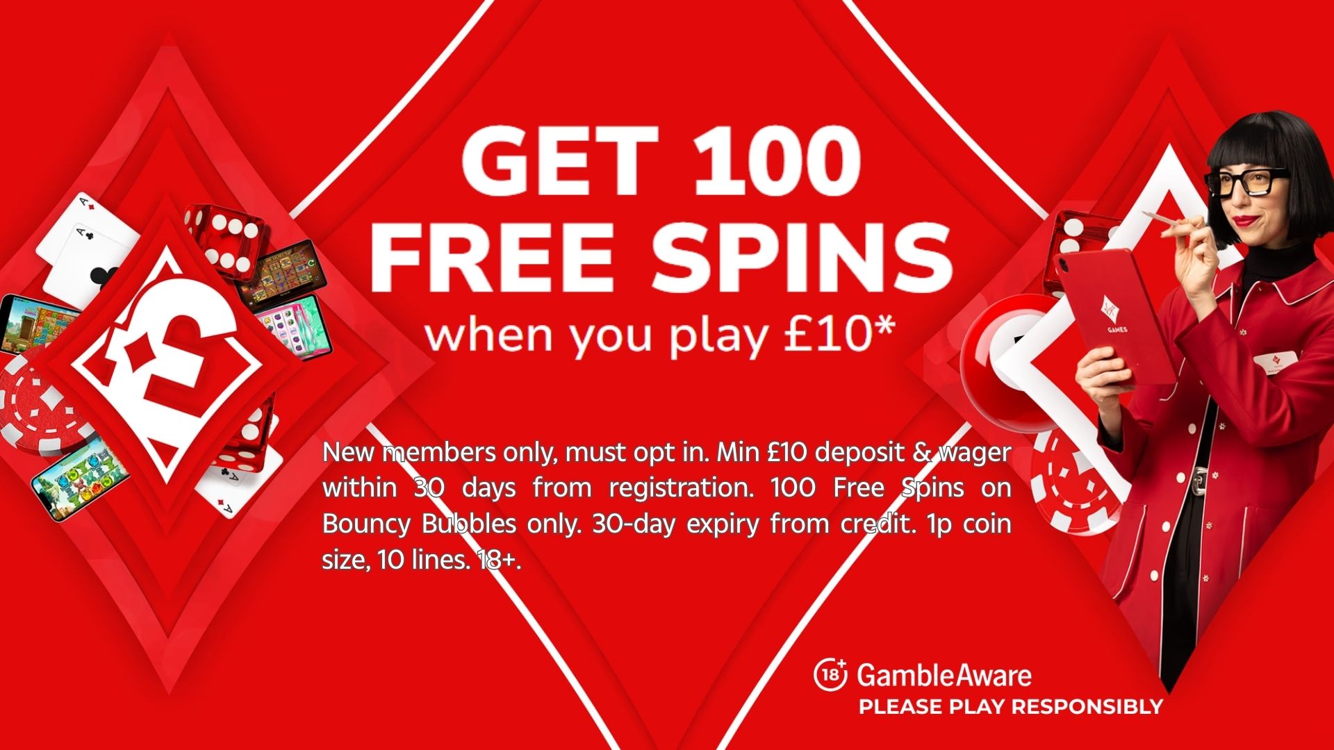 - Play: Once qualified, your 100 free spins (worth 10p each) will be credited for use on Bouncy Bubbles.