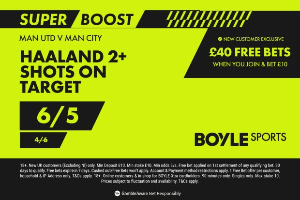 BOYLE Sports are also offering customers a special price boost: Erling Haaland to have two or more shots on target at a whopping 6/5 – that’s boosted from 4/6!