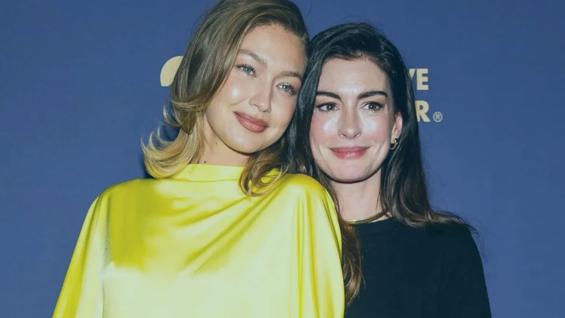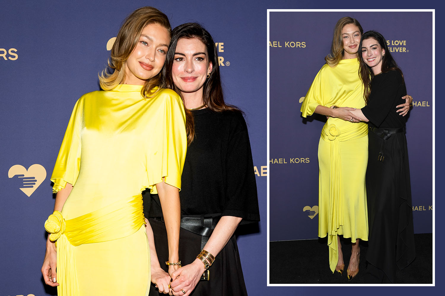 SUPERMODEL Gigi Hadid looks a ray of sunshine at a charity event beside actress pal Anne Hathaway.