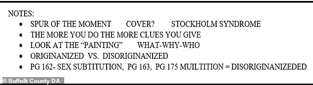 In a section titled ‘PROBLEMS,’ he allegedly listed potential ways he could get caught, including blood stands, witness identification and hair and fiber evidence.