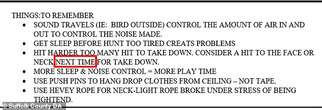 In June 2024, nearly a year after his arrest, prosecutors said they found a ‘planning document’ in his home that he used to ‘methodically blueprint’ his killings in a hard drive found during one of the searches at his Long Island home.