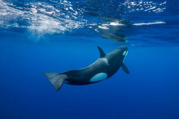 Most killer whales remain silent as they hunt for their dinner so that the prey can’t swim away before being caught.
