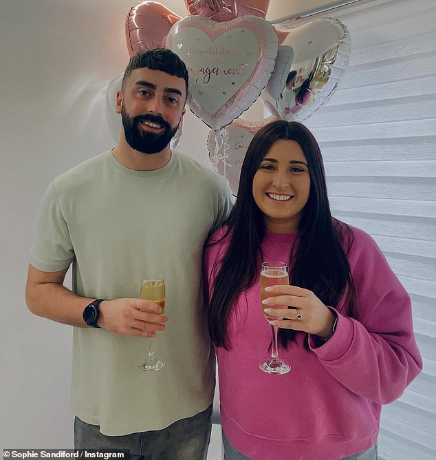 The armchair critic, 28, who has appeared on the Channel 4 show with brother Pete Sandiford since 2017, beamed alongside her future husband as they enjoyed a glass of celebratory champagne.