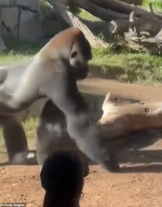 Dr. Erin Riley, a primate behavior specialist and anthropology professor at San Diego State University, told CBS8 that ‘charging displays’ are a normal part of gorilla behavior.