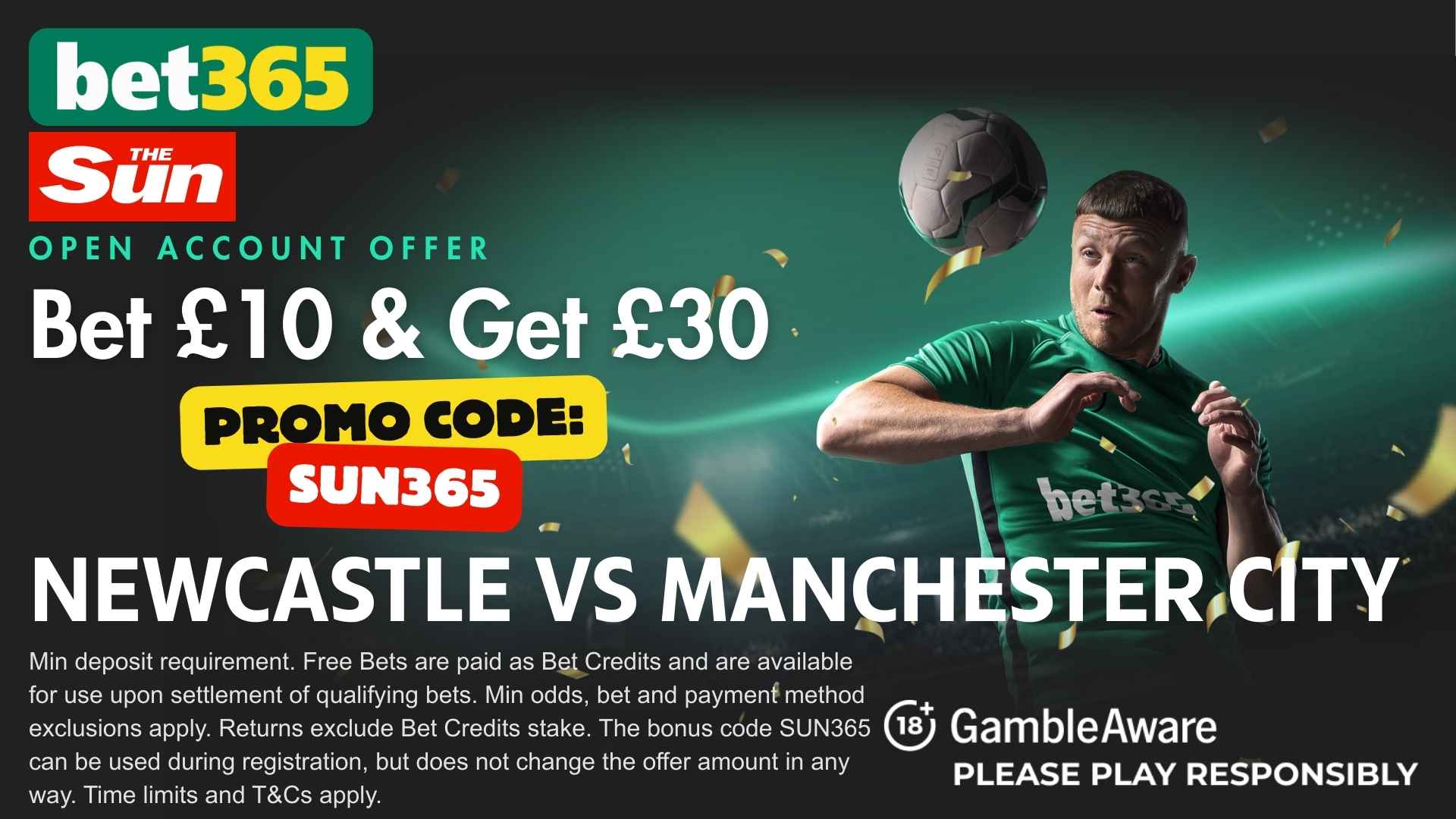 You can back the Magpies to save their season—or City to march on to Wembley—with a 300% welcome offer using the bet365 bonus code SUN365.