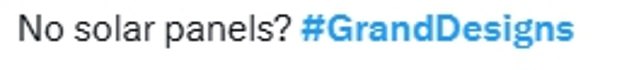 Meanwhile, viewers were left unconvinced by their home’s eco-credentials, especially as it came as a result of demolishing the pre-existing bungalow, even accusing the programme of ‘ecowashing’.