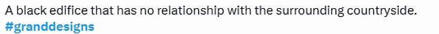 Another asked: ‘No solar panels?’, while one more called it ‘a black edifice that has no relationship with the surrounding countryside’.