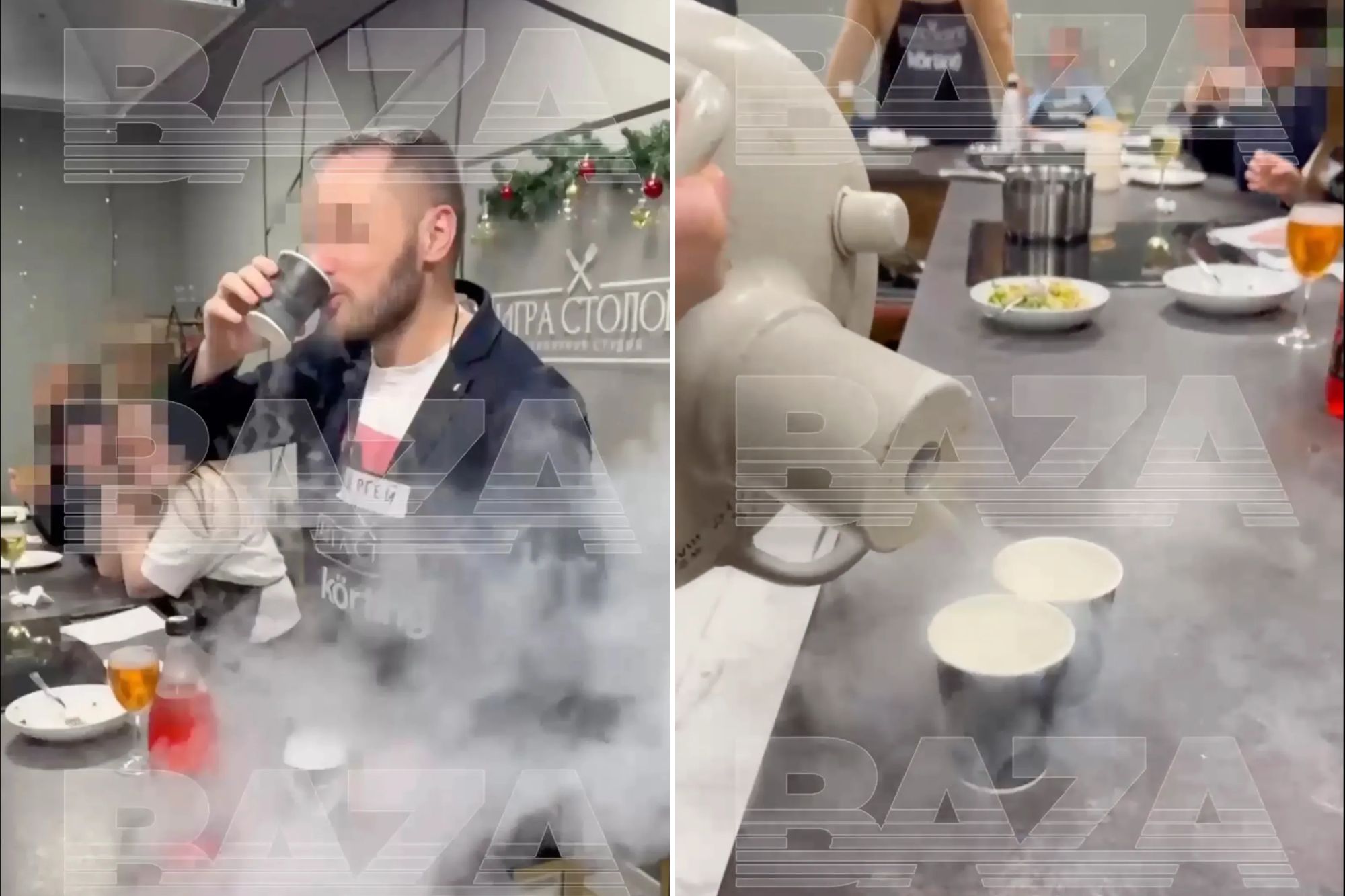 The incident happened at a corporate Christmas party held at the Igra Stolov “Game of Tables” cooking studio, where guests were being entertained with a theatrical “cryo-show” by an unidentified “celebrity chef”.