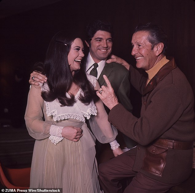 Singer Guy Hovis has died at age 84 after battling an illness in the hospital; Hovis pictured center with then-wife Ralna English and Lawrence Welk