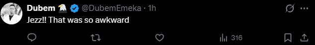 Another wrote, ‘Je[e]z!! That was so awkward,’ and an X user questioned, ‘Did her dress break?’