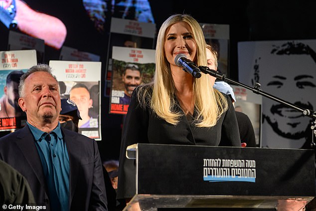 ‘Tonight, we honor the strength of every family waiting, praying, and believing,’ Ivanka, who converted to Judaism in 2009, told the crowd. ‘We’re all praying for Monday and beyond.’
