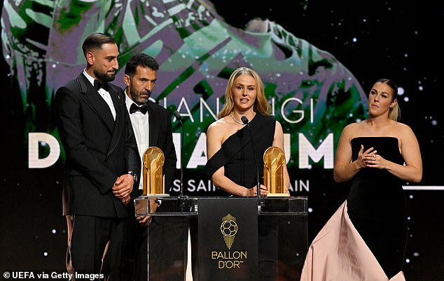 Addressing the crowd in a speech, the keeper said: ‘It is a privilege to be surrounded by so many inspirational women, from so many diverse disciplines. Not only my fellow honourees, but every woman in this world.